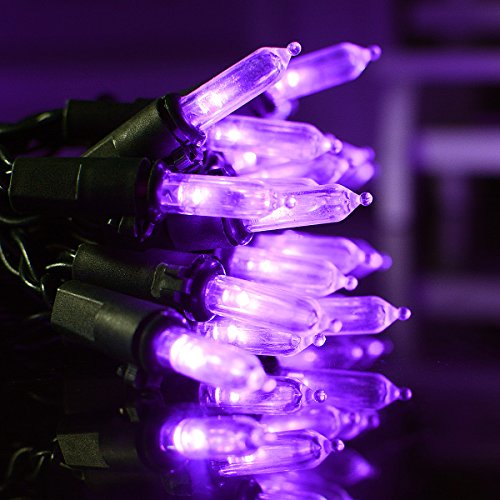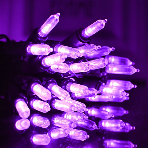 Lalapao Halloween Lights Outdoor M5 Battery Operated String Lights 100 LED Clear Mini Fairy Christmas Lighting Decor Timer For Indoor Patio Garden Lawn Tree Party (Purple)