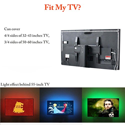 【Reduce Eye Fatigue】 - By Adding a comfortable backlight to monitor, the tv bais light help to reducing eyestrain when tv watching and gaming. Can light up 4/4 edges of 32 40 42 43 46" TV, top and sides of TV 50 55 and 60" TV.