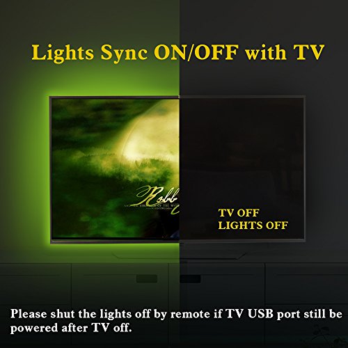 【Easy to use】 - Simply clean tv, stick LED light strip on tv backside, connect stips and plug it into TV USB port, That's it. Bias light will sync on/off with TV, except TV USB port still get powered after tv is off.