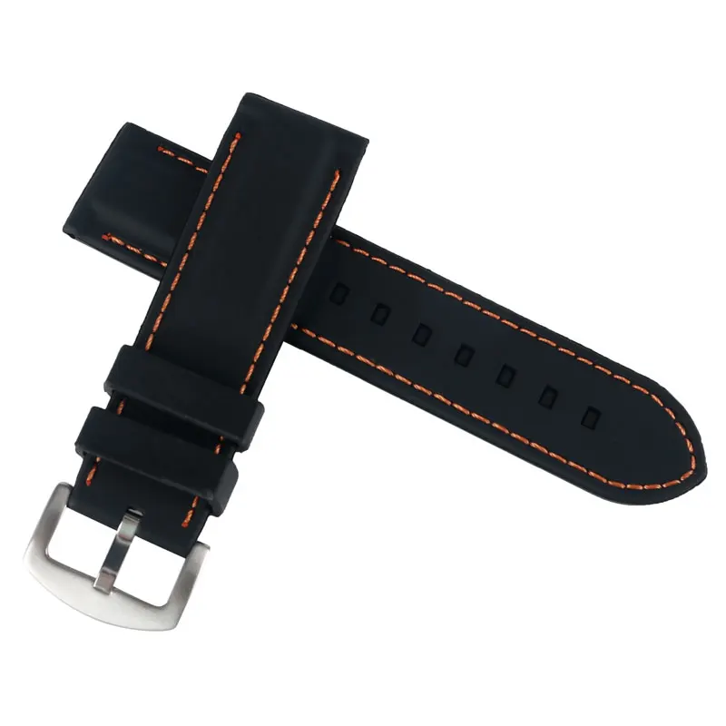 | [해외]Orange 라인 바느질 부드러운 스포츠 방수 실리콘 시계 스트랩 밴드 스테인레스 스틸 코레아 reloj 20 미리메터/22 미리메터/24 미리메터/26 미리메터 시계 |