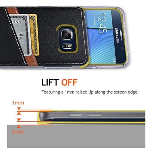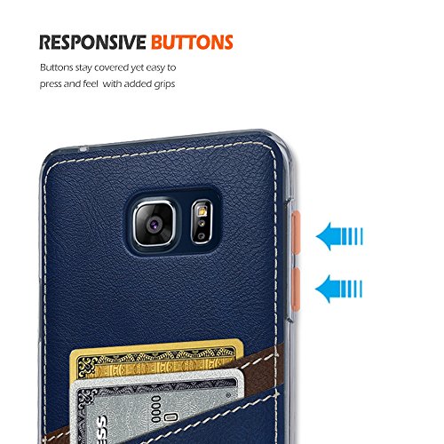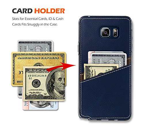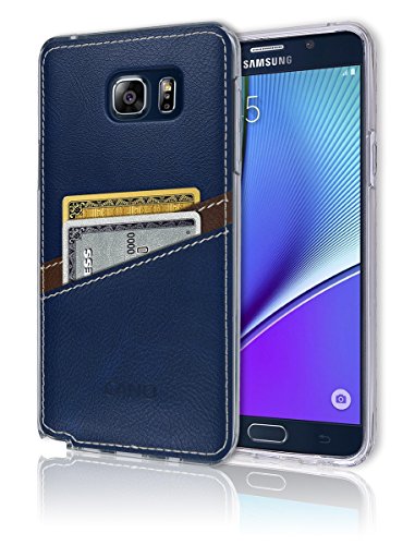 [Description] Perfect fit for Samsung Galaxy Note5: enable to access all buttons and ports 2 Card slots without heavy wallet: allow you to carry 2 important ID/Credit cards Protection you need: Polyurethane case protects impact on all directions Design with care: firm grip_ non-slip_ slim fit (minimize bulk and weight) Synthetic leather with Polyurethane TPU bumper: shock-absorbent_ hold all 4 corners