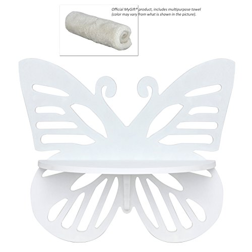 - Feature : Wooden wall shelf with a charming butterfly design and a white finish. / Features 1 half-circle shelf with a support below. / Easy to mount on any wall using the included hardware. Some assembly required. / **Official MyGift® product includes multipurpose cleaning towel.** / Approximate Dimensions: 12.5" W X 5.5" D X 11" H.