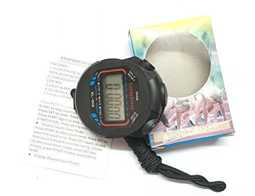 -. Feature : Light weight and included lanyard this sports stopwatch is the ideal time measurement device for athletes - especially runners - es & referees / Waterproof two stopwatch function time date display: Can be used in any weather condition / Time, date and alarm function: Switch between 3 display modes to check the time, date and set your alarm / Large display, material: Abs / Built-in ag13 button battery