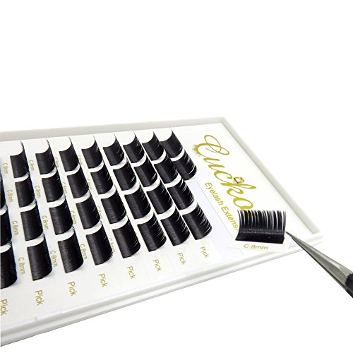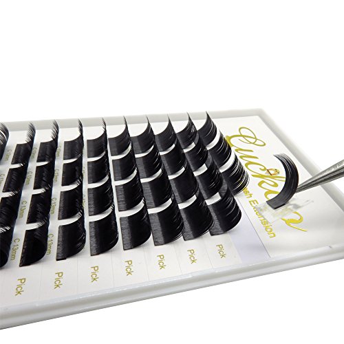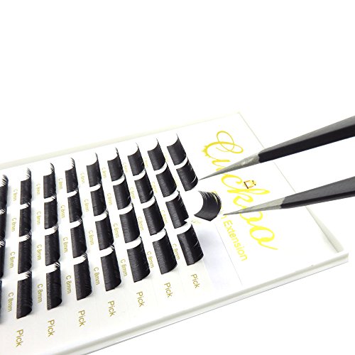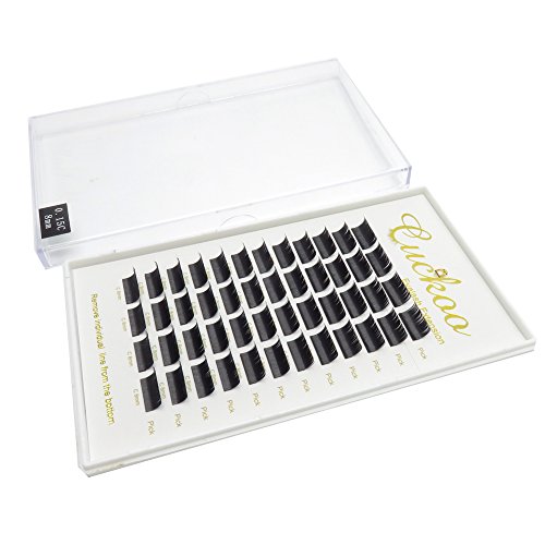 Cuckoo Lashes Split Natural Black Ellipse Flat Eyelash Extension 0.15MM Thickness C Curl 12MM Subsection Professional Individual Faux Mink Eyelashes 4 Parts...