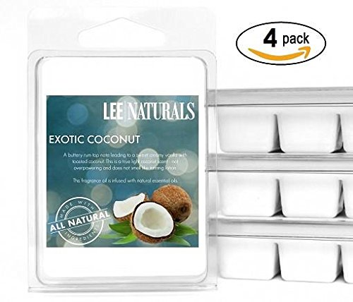 Lee Naturals Spring & Summer - (4 Pack) EXOTIC COCONUT Premium All Natural 6-Piece Soy Wax Melts. Hand Poured Naturally Strong Scented Soy Wax Cubes