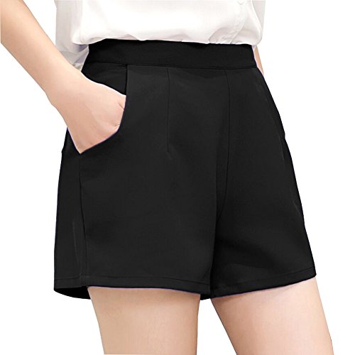 -. Title : FEVON ショートパンツ レディース 春夏 シフォン ハイウェスト ワイドパンツ ショーパン ボトムス シンプル ブラック カジュアル フォーマル 通勤 通学 短パン ゆったり 美脚 ポケット おしゃれ エレガント