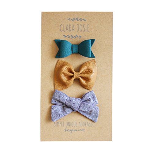 | Girls Hair Bows (3 pack) - Alligator Clip Hair Accessories - by Clara Josie |