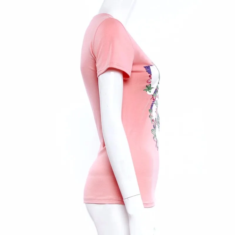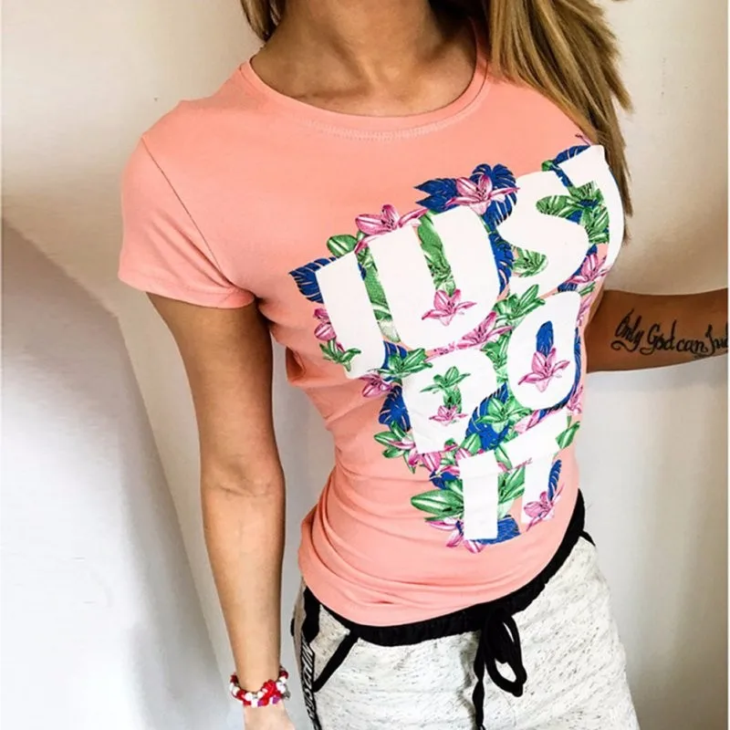 Women Short Sleeve Casual Print Letter Autumn t Shirt Sexy Tops Femmes Tees Cotton White Pink Women's tshirts Clothing