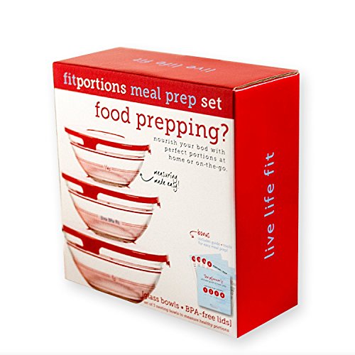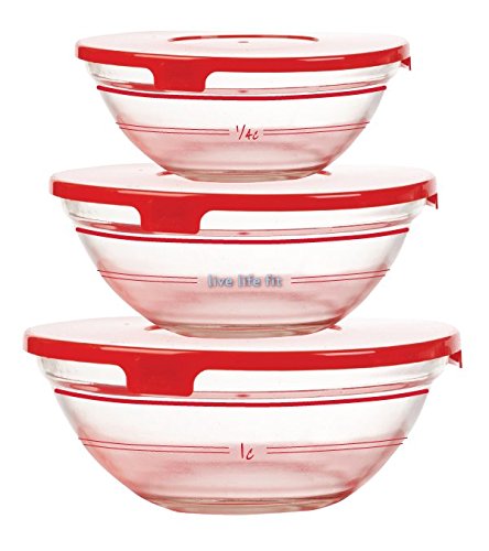 Fitlosophy Fitportions Meal Prep Containers Nesting Glass Bowls with Lids (Set of 3)