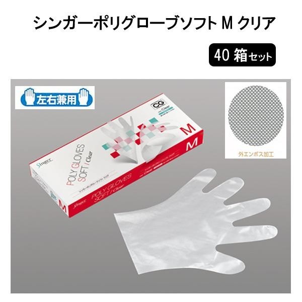 米飯がくっつきにくいエンボス加工。食品衛生法370号に適合しています。 製造国:ベトナム 素材・材質:ポリエチレンLD 仕様:外エンボス加工左右兼用厚み:0.035mm(中央値) セット内容:箱入り(100枚)×40箱 ※サプライヤー直送品 ご注文後3~4営業日後の出荷となります【商品名】宇都宮製作 シンガーポリグローブソフト M クリア 箱入り(100枚)×40箱