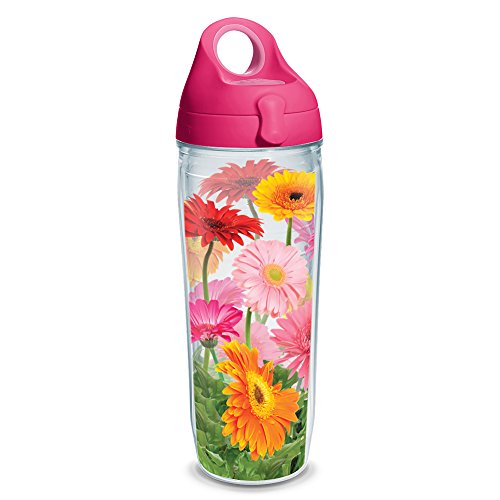 Tervis 1230771 Gerba Daisy Wrap Water Bottle with Pink WB Lid, 24 oz, Clear