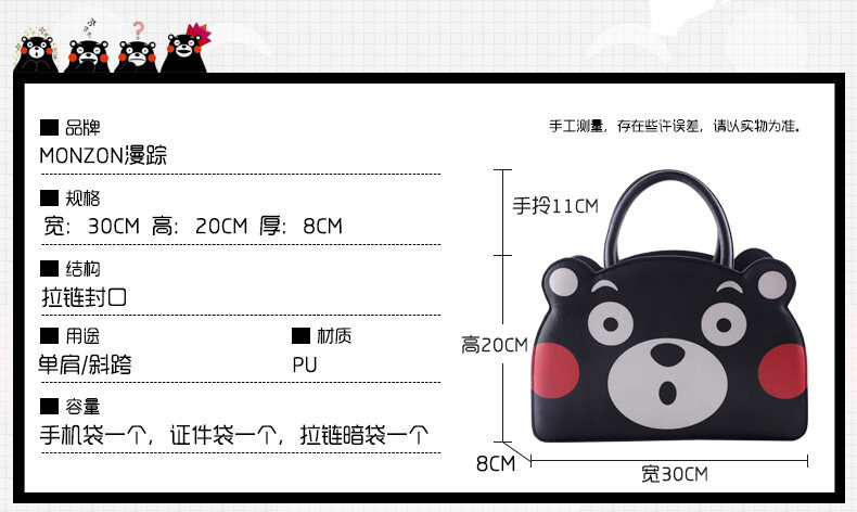 日本熊本县吉祥物熊本熊呆萌挎包卡通动漫周边手提包拎包