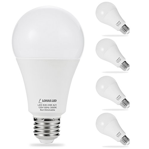 LOHAS A21 LED Light Bulb, 150-200 Watt Light Bulbs Equivalent, 23Watt Non Dimmable LED, Soft White (3000K), 2500 Lumens for Home Lighting, 4 Pack