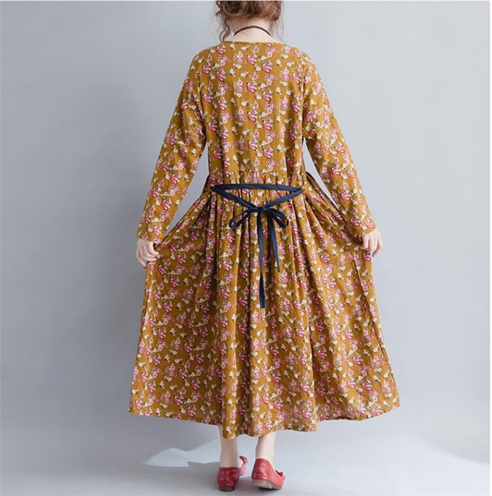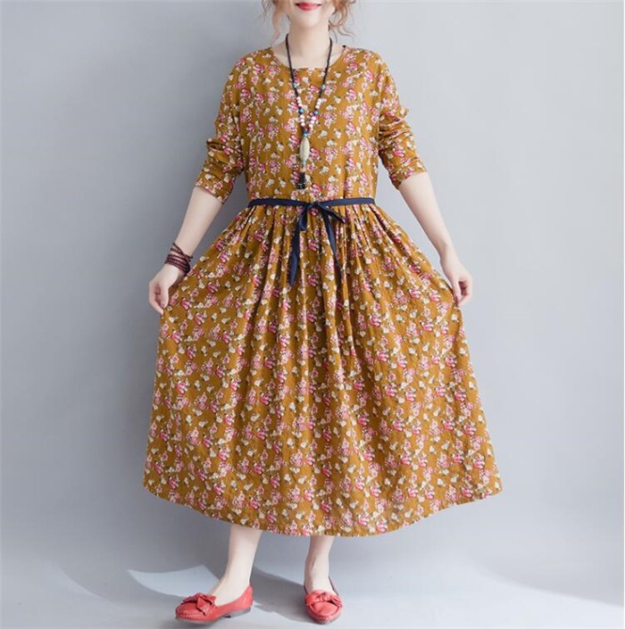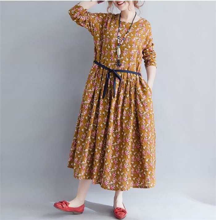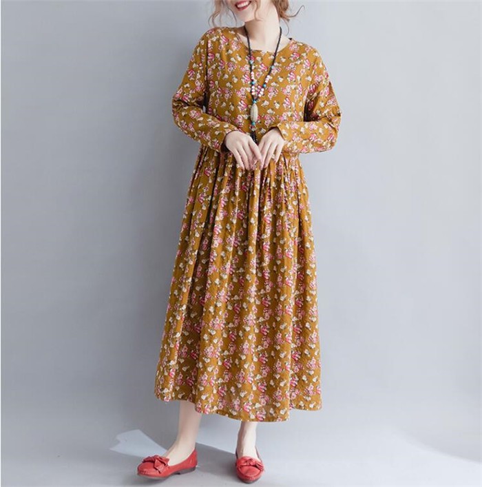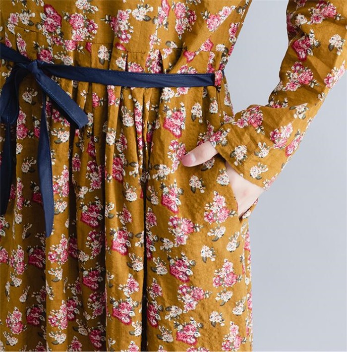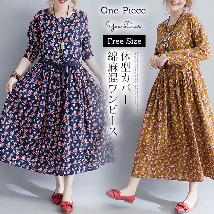 【商品特徴】・ふんわりラインで体型カバーは抜群!!・大人女子を虜にする可愛さ惹き立つ花柄の魅力。♪・ウエストの切り替えにはミニタックをあしらい、アクセントを添えました◎・春秋冬を中心に活躍する落ち感のあるしなやかな布帛生地を使用し、軽やかに仕立てました。【キーワード】検索ワンピース 花柄 ロング丈ワンピース 長袖 秋ワンピース ミディアム丈 ひざ丈 膝丈 ミモレ丈 ロング丈 ロング ゆったり 膝丈ワンピース 体型カバー ブランドネック コットンワンピース 綿 大きいサイズ 着痩せ シャツワンピース 30代 40代 50代 お洒落 おしゃれ オシャレ トップス チュニック ワンピース ゆるっと 旅行 ママワンピース 母親 ママ ワンピース ★素材:ポリエステル.綿麻★生地の厚さ:普通 ★生産国:中国★カラー:黄色、紺色(写真参考)★サイズ(CM):フリーサイズ:バスト118 袖口25 袖丈67 着丈125※サイズは人の手によって測っているため、1-3cmの誤差がある場合がございます。予めご了承下さいませ。