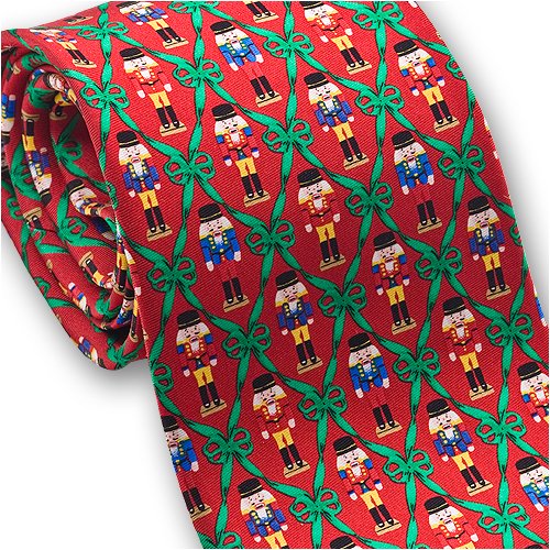 Product Description Flowing ribbons wrap a bevy of nutcrackers on this witty twist on classic. Sugarplum fairies not included. Also available in gold. 100% silk. Hand finished in the USA. 0