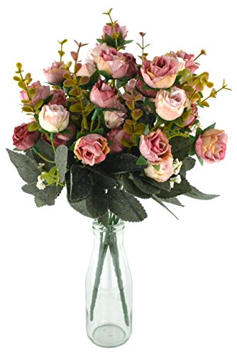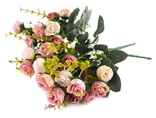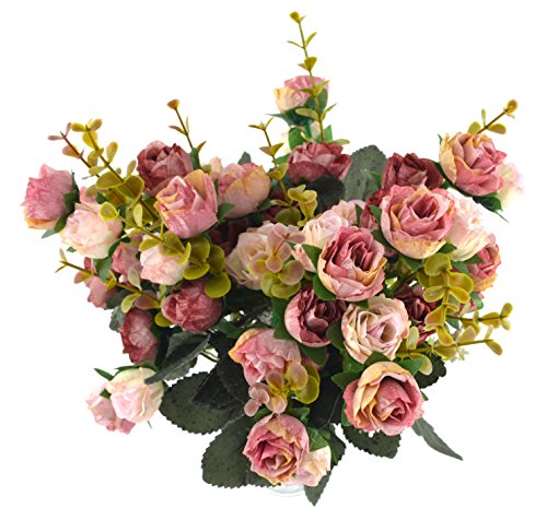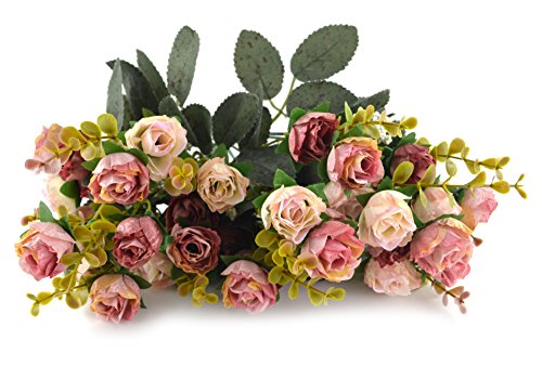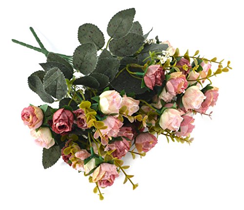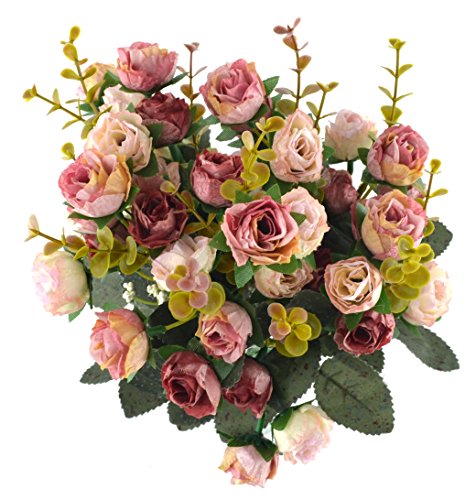 Samyo 21 Heads Artificial Silk Rose Dried Flowers Flower Arrangement Fake Bouquet Wedding Home Floral Decor - Pack of 2 (Pink & coffee)