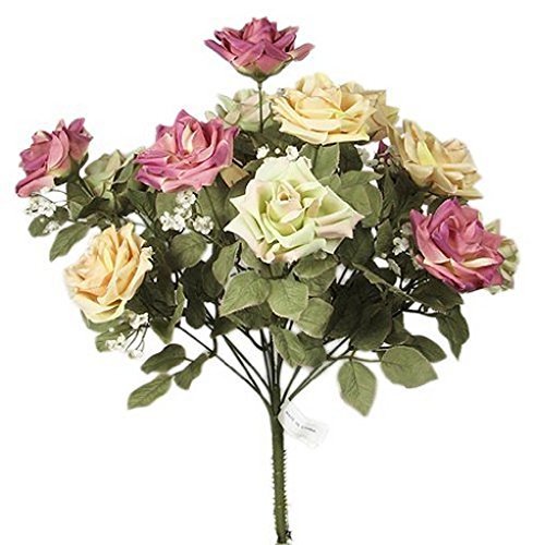 Artificial Flowers Silk Roses Wedding Bouquet, 19" L, Mauve/Peach/Green
