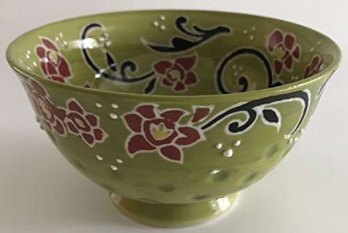 Hand Painted Olive Green Decorative Bowl by Yokohama Studio . Hand Painted Olive Green with Red, Yellow, Black & White Decorative Bowl will enhance any table. This Ceramic Bowl can be used for cereal, rice, ice cream, fruit, salad, serving and more. See More Colors, And Bowls From Choice FindsFeature
