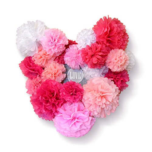 Hullabaloo Party 20 Pcs Premium Tissue Paper Pom Poms, Pink Mix Paper Flowers, Wedding and Baby Shower Decorations, Table and Wall Decor,...