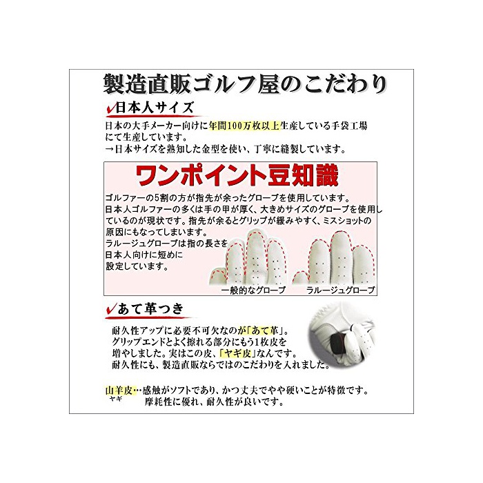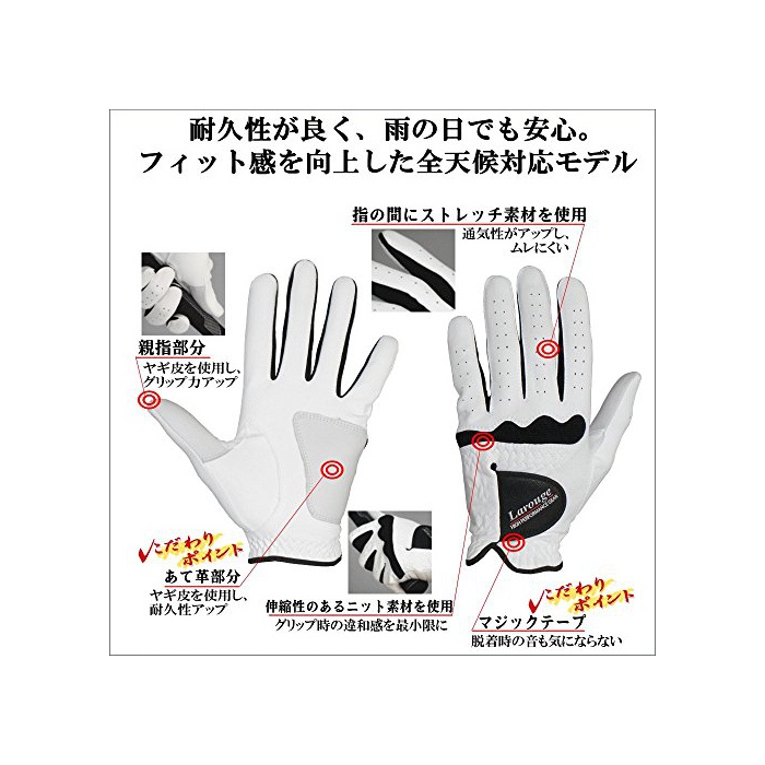 내구성이 좋고, 비의 일에도 안심.피트감을 향상 했 전날씨 대응 모델!내구성 업에 필요 불가결한 것이「맞혀포」.그립 엔드와 잘 스치는 부분으로 이제(벌써) 한 장 가죽(껍질)를 늘렸습니다.통상양 가죽(껍질)의 곳,감촉이 소프트에 마모성보다 뛰어나고, 튼튼하고 약간 딱딱한 이라고 하는 특징의「염소 가죽(껍질)」를 사용.양가죽(껍질)에 비해 내구성보다 뛰어나 있습니다.