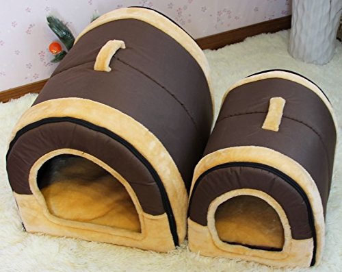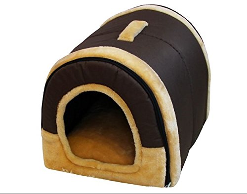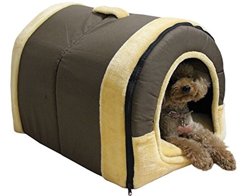 It is an indoor bedroom of a dome type dog cat with a brick pattern.
