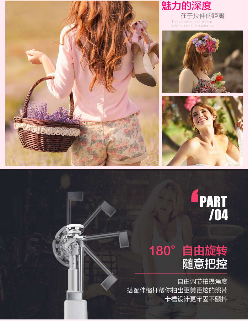 2. 无需充电(蓝牙自拍杆在使用过程中需携带充电线,并且电池使用时间有限,漫长旅 途中很有可能因为没电影响您美颜的自拍)。