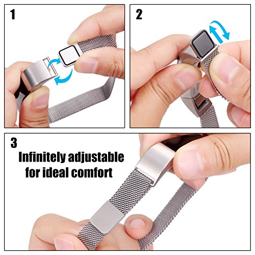 Strong magnetic closure is easy to stick and lock to the mesh strap and secures your fitbit alta or fitbit alta hr watch. Strap is adjustable and fits wrists from 5.5 to 8.1 inches.