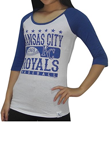 MLB KANSAS CITY ROYALS Womens Athletic 3/4 Sleeve Glitter T-Shirt M White