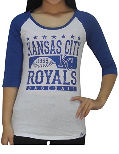 MLB KANSAS CITY ROYALS Womens Athletic 3/4 Sleeve Glitter T-Shirt L White