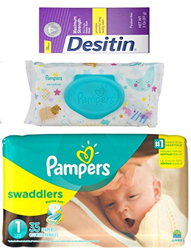 Diapering Bundle - Includes Pampers Swaddlers Size 1, Pampers Sensitive Wipes and Desitin Diaper Rash Cream - Perfect Diaper Changing Combo - Makes a Great New Mother Gift! Give It As a Gift At Your Next Baby Shower!