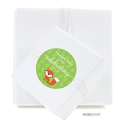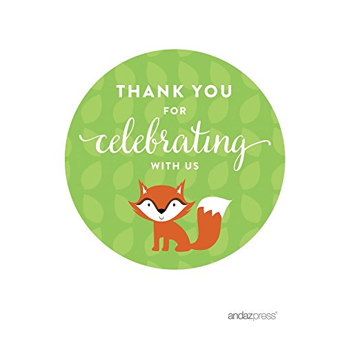 Andaz Press Woodland Forest Baby Shower Collection, Round Circle Label Stickers, Thank You for Celebrating with Us!, 40-Pack, Fox Themed Party Decorations