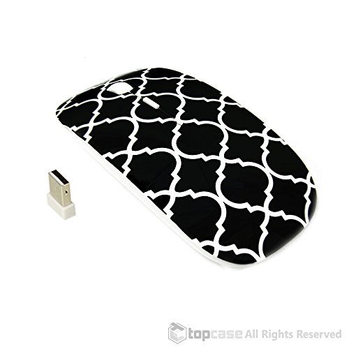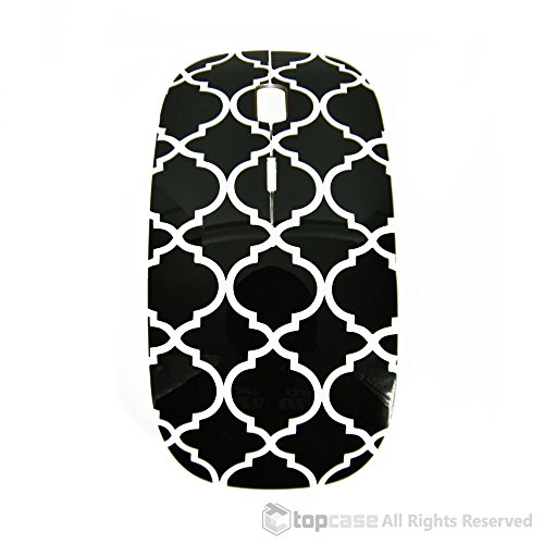 TopCase Quatrefoil / Moroccan Trellis Series Black USB Optical Wireless Mouse for Macbook (pro , air) and All Laptop + TopCase Designed Chevron Mouse Pad