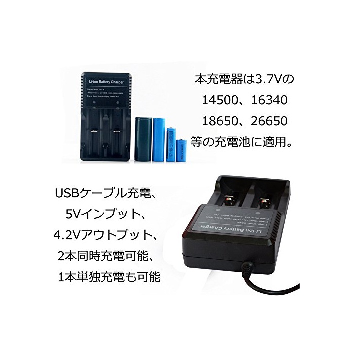 원본상품명: 2本 中電用電池 18650リチウムイオン電池 3.7V 3000mAh USBバッテリ充電器付き 日本語取扱明書付