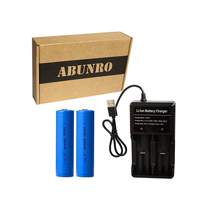 ABUNRO 2개 회중전등 용전지 18650리튬 이온 전지 3.7V 3000mAh USB배터리 충전기 부착 일본어 취급 설명서 첨부속