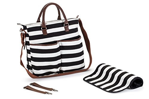 -. Title : Classic Striped Black and White Cotton Diaper Bag including Changing Pad by Wasserstein
