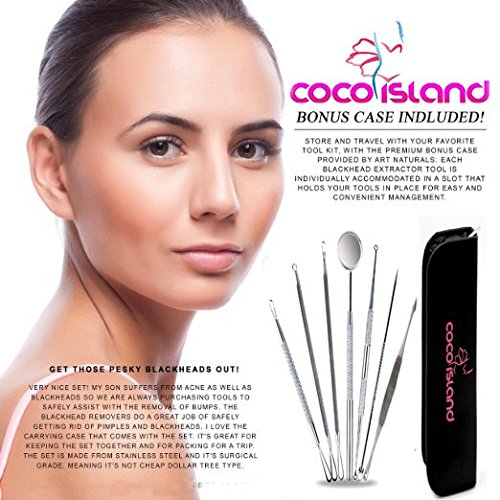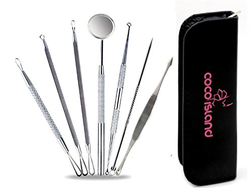CoCo Island Comedone Extractor Tool Set For Blackhead, Facial Acne, And Comedones (M 7Pcs Black)