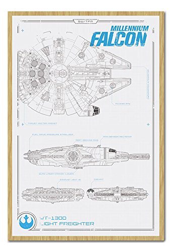 -. Title : Star Wars Episode 7 Millenium Falcon Plans Poster Magnetic Notice Board Beech Framed - 96.5 x 66 cms (Approx 38 x 26 inches)