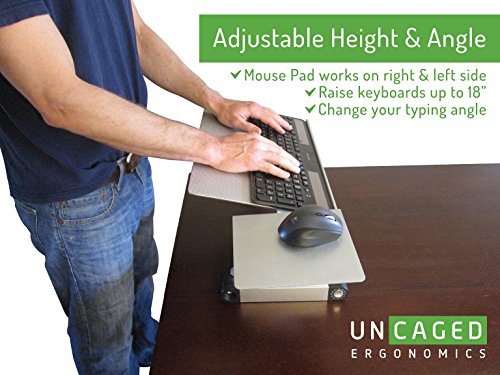 -. Binding : Office Product -. Brand : Uncaged Ergonomics -. Feature : Holds keyboards at the optimal height and angle. Perfect for standing up at any desk. / ADJUSTABLE HEIGHT KEYBOARD STAND: Raise keyboards to almost any height from flat up to 18" tall! / NEGATIVE TILT: Adjust your typing angle in 15-degree increments for a neutral or negative wrist angle to optimize wrist health. / ADJUSTABLE MOUSE PAD: Large ~7x7" mouse pad easily and quickly connects to either the right or left side. Mouse pad angle is adjustable independently of the keyboard tray's angle. / 18" Wide Panel | All Aluminum Construction | Lightweight, Durable, Collapsible | No Installation | Adjustable Height Up To ~18" | Adjustable Typing Angle -. Label : Uncaged Ergonomics -. Manufacturer : Uncaged Ergonomics -. Model : WEKT -. MPN : WEKT -. PackageQuantity : 1 -. PartNumber : WEKT -. ProductGroup : Office Product -. ProductTypeName : OFFICE_PRODUCTS -. Publisher : Uncaged Ergonomics -. Studio : Uncaged Ergonomics -. Title : Uncaged Ergonomics WorkEZ Keyboard Tray & Mouse Pad, Adjustable Height & Angle Ergonomic Computer Keyboard Stand w/ Negative Tilt