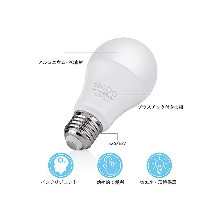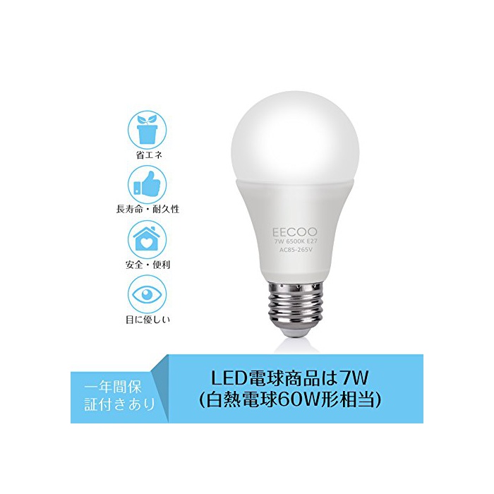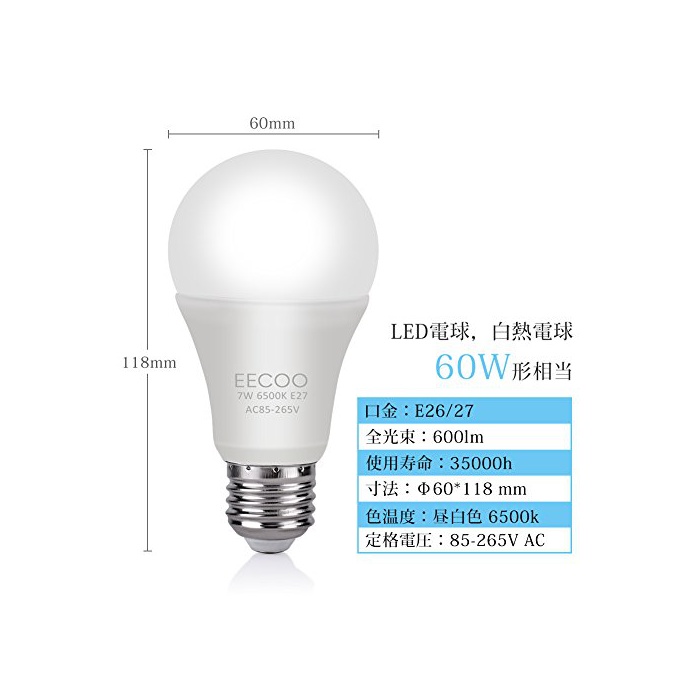 원본상품명: センサ 電球,EECOO あかりセンサ付き LED電球 E26/E27口金 7W 60W形相 白色 6500K 自動点/消 光センサ led 電球 常夜 600lm 配光タイプ 密閉