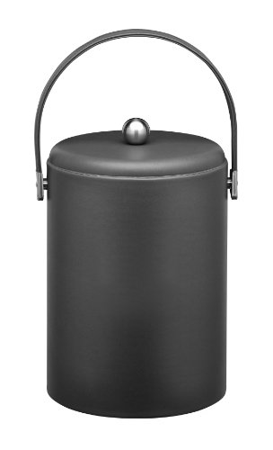 -. Title : Kraftware Ice Bucket with Stitched Handle, Domed Lid and Chrome Astro Ball Knob, Black - 5 Quart