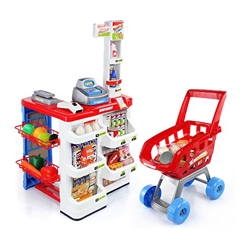 -. Title : Qm-h Pretend Play Simulation Super Store Cashier Playsets with Lights, Sound and Accessories Red 999A-01(LHW=18.9x32.3x16.2Inches)