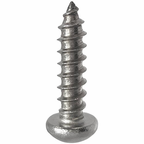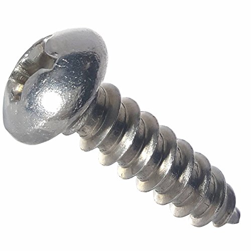 #12 x 1-1/2" Round Head Sheet Metal Screws, Phillips Drive, Stainless Steel 18-8, Full Thread, Bright Finish, Self-tapping, Type A, Quantity 50