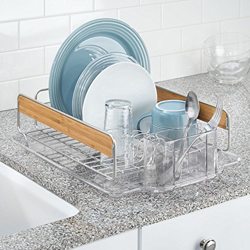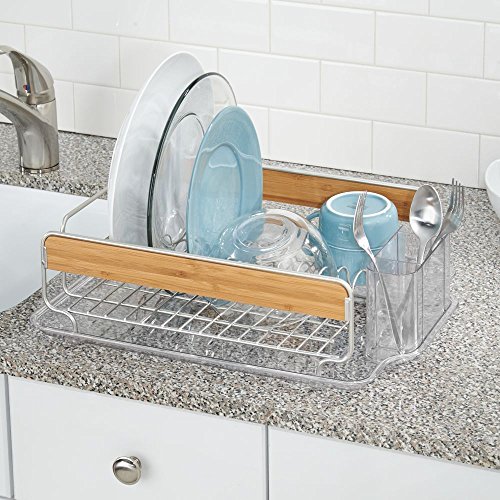 InterDesign Formbu Kitchen Dish Drainer Rack for Drying Glasses, Silverware, Bowls, Plates - Satin/Natural Bamboo