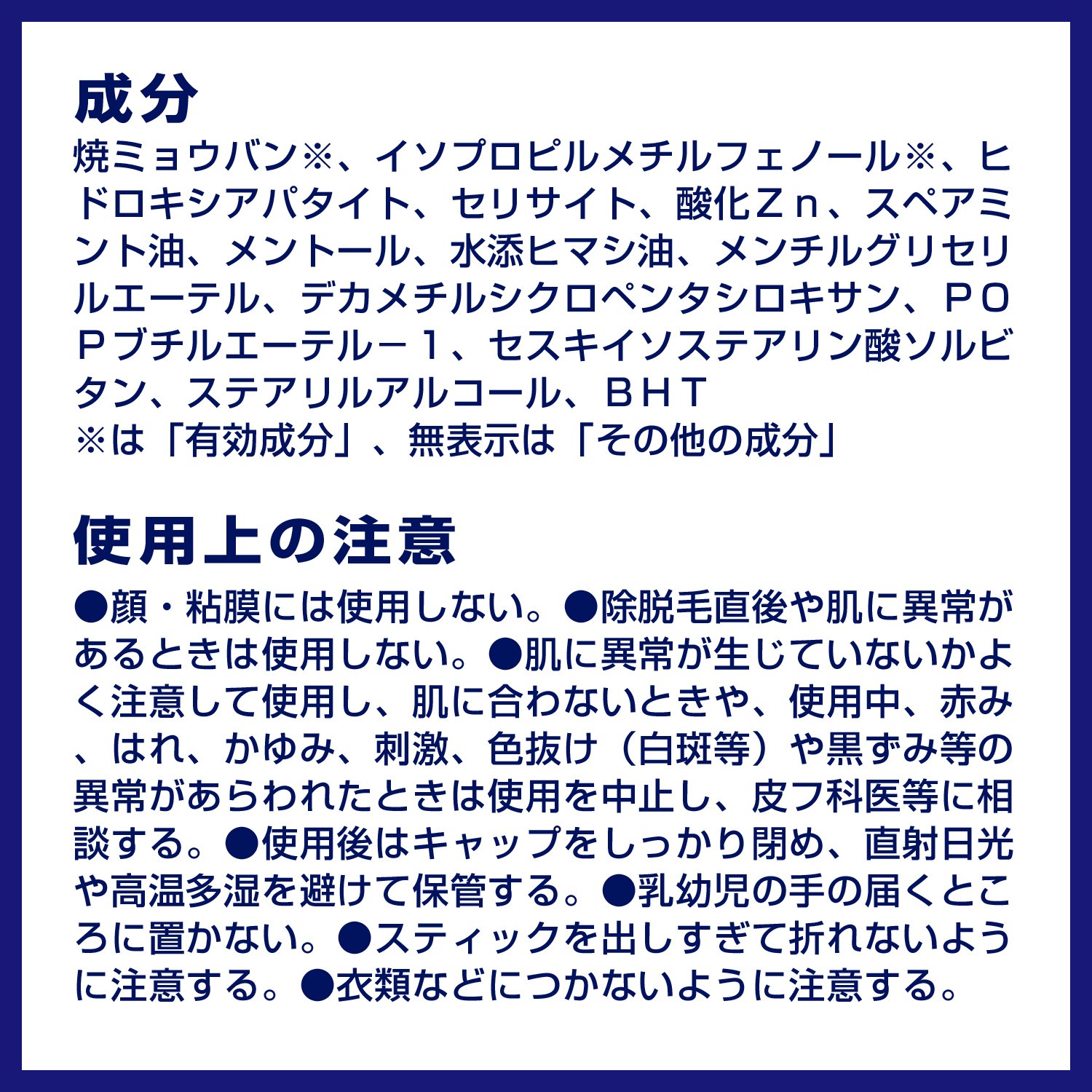 効能・効果:皮フ汗臭、制汗、わきが(腋臭)