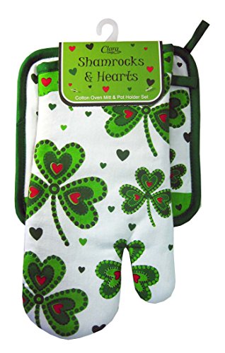 Oven Mitt & Pot Holder-Shamrocks and Hearts