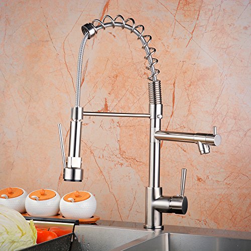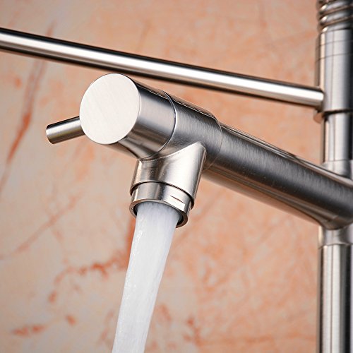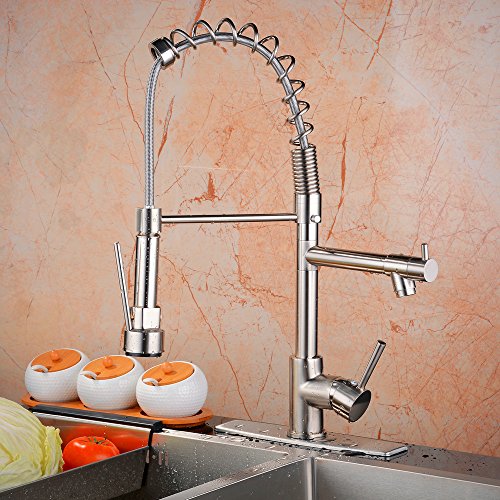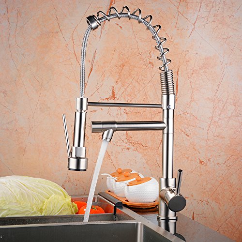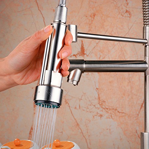 Ollypulse Solid Brass One Hole Deck Mount Kitchen Sink Faucet with Swivel Sprayer and Spout Brushed Nickel