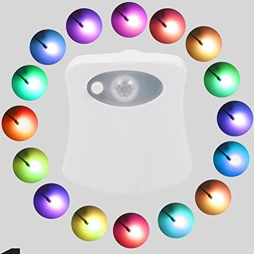 Ausaye 16-Color Motion Activated Toilet Night Light, Light Detection Toilet Light / Motion Sensor Toilet Bowl Light, LED Night Light with 5 Stage Dimmer