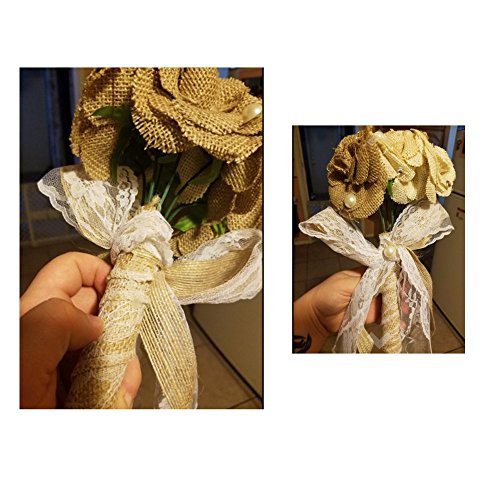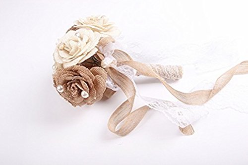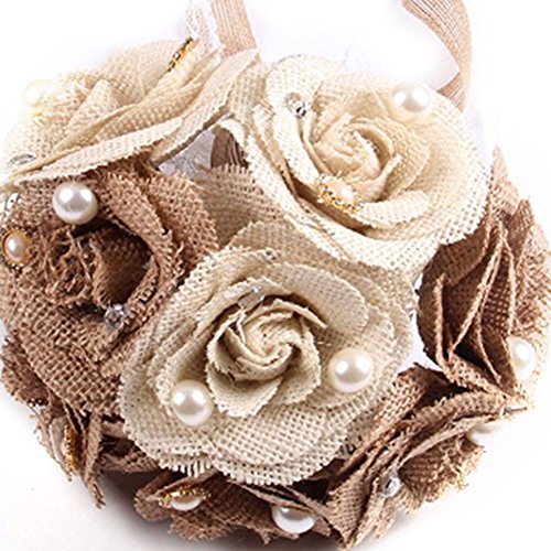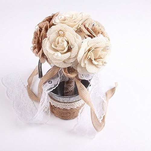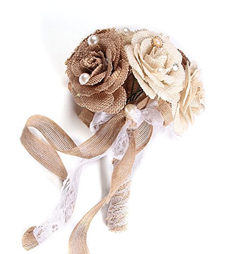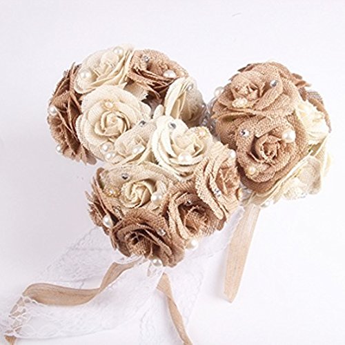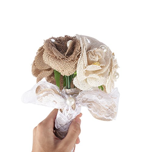 Gofypel Wedding Bouquet Flower Bouquet Bride Burlap with Lace and Pearls