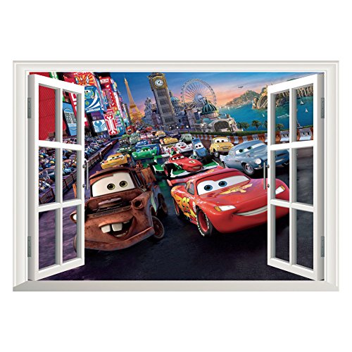-. Title : Fange DIY Removable Pixar Cars Lightning McQueen 3D Window View Art Mural Vinyl Wall Stickers Kids Room Decor Nursery Decal Sticker Wallpaper 27''x19''