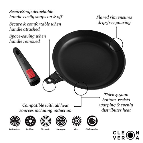 Why You Need a Removable Handle Frying PanThe Cleverona Essential 11-inch frying pan features a SecureSnap handle - a proprietary handle that can be easily removed & attached to the pan.